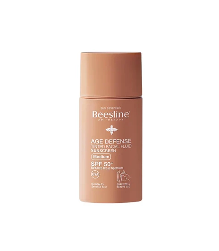 Beesline Age Defense Tinted Facial Fluid Sunscreen in the “Medium” shade is a multi-purpose product that combines high-level sun protection with a skin-perfecting tint. It’s designed to shield your skin from the sun’s rays while providing a natural-looking, flawless finish.