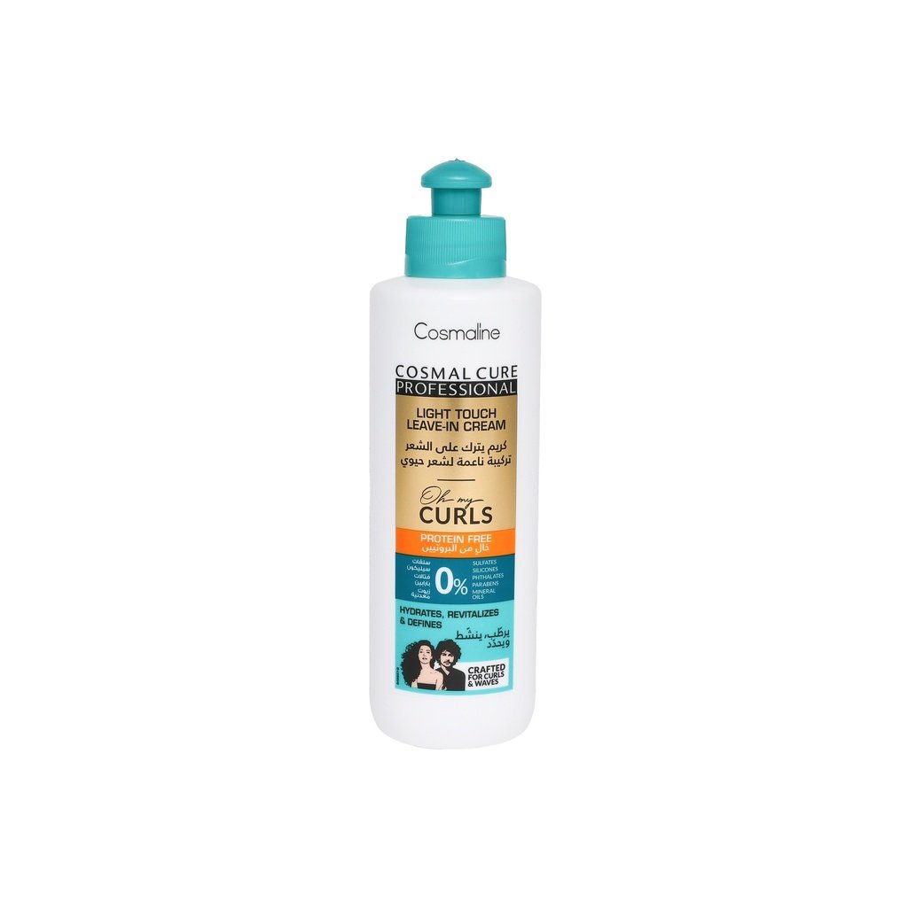 استمتعي بالحل الأمثل لتجعيدات ناعمة ومحددة ونابضة بالحيوية مع كريم كوزمالين كوزمال كيور بروفيشنال أوه ماي كيرلز لايت تاتش الذي يُترك على الشعر. صُمم هذا الكريم خصيصًا للشعر المجعد، ليمنحكِ التوازن المثالي بين الترطيب والتحكم دون إثقال شعركِ.