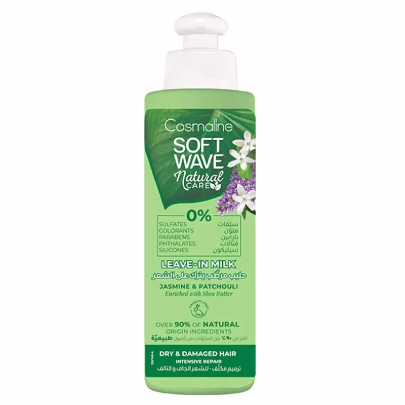 Nourish and detangle your hair daily with Cosmaline Soft Wave Natural Care Leave-In Milk for smooth, manageable, frizz-free locks. | غذّي شعرك يوميًا مع Cosmaline Soft Wave Natural Care Leave-In Milk للحصول على خصلات ناعمة وسهلة التعامل.