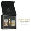| محتويات الطقم | عطر (100 مل)، بخاخ مزيل عرق، وجل استحمام / لوشن للجسم. |