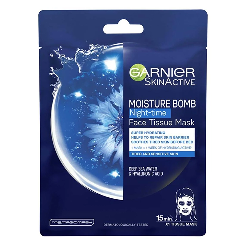 The Garnier Hydra Bomb Night Face Tissue Mask is an intensive overnight treatment designed to replenish and revitalize your skin while you sleep. This mask is formulated to deliver a powerful dose of hydration, leaving your skin looking plump, rested, and radiant by morning.