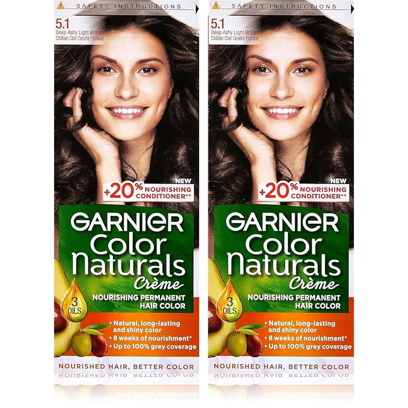 The Garnier Color Naturals permanent hair color in the shade 5.1 Deep Ashy Light Brown is a cool-toned light brown that delivers a long-lasting, natural-looking result. This shade is designed with deep ash undertones to effectively neutralize unwanted red or orange tones, giving you a beautiful, sophisticated brown.