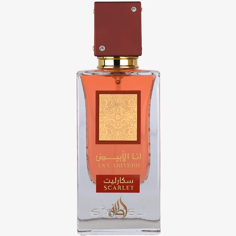 Ana Abiyedh Scarlet is an intense and captivating fragrance that strikes a balance between bright fruit, deep florals, and sweet gourmand warmth.