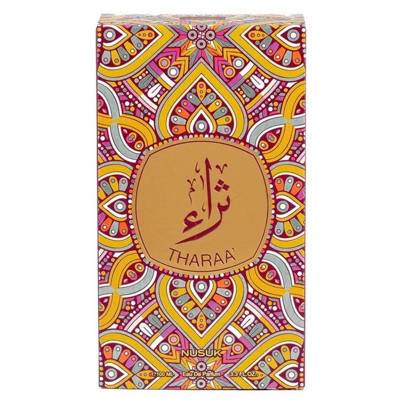 Tharaa is a captivating and elegant Unisex fragrance, typically categorized as a Floral Oriental or Spicy Woody scent. It opens with a stimulating blend of Allspice and Freesia, giving it an immediate fresh, warm, and spicy lift. The heart of the fragrance blooms with a rich bouquet of classic and exotic florals, dominated by Jasmine and Bulgarian Rose. The true depth of the scent comes from its base, where intense notes of Incense, Himalayan Cedar, and creamy Sandalwood provide a long-lasting, smoky, and sophisticated trail.